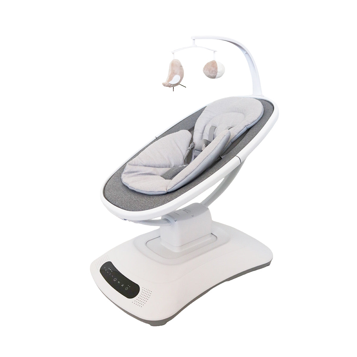 The MamaRoo is fitted with a secure 5-point safety harness, a soft newborn seat cushion and an entertainment arch with 2 interactive toys to encourage visual tracking and eye-hand co-ordination. The seat position is adjustable from sitting to a fully reclined position for optimal comfort and use from birth.